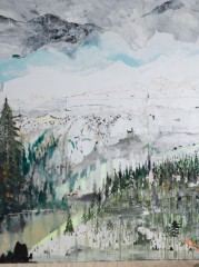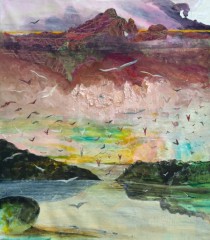 "Peter Bond’s works are formed from a beguiling textural and methodic practice. They surround the viewer with mountains, trees, grass, rivers, waterfalls, lakes and sometimes the sea. In and out flit birds, fish and also an intangible presence not just attributable to the skies or the colours but perhaps to a world of metaphor where human qualities are subtly reflected."