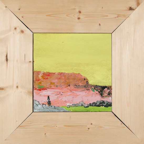 30 x 30 cm – Oil and acrylic on wood. Large natural pine frame: 13 x 4 x 14 cm.