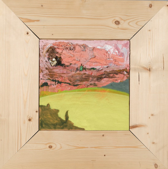 30 x 30 cm – Oil and acrylic on wood. Large frame in natural pine: 13 x 4 x 14 cm.