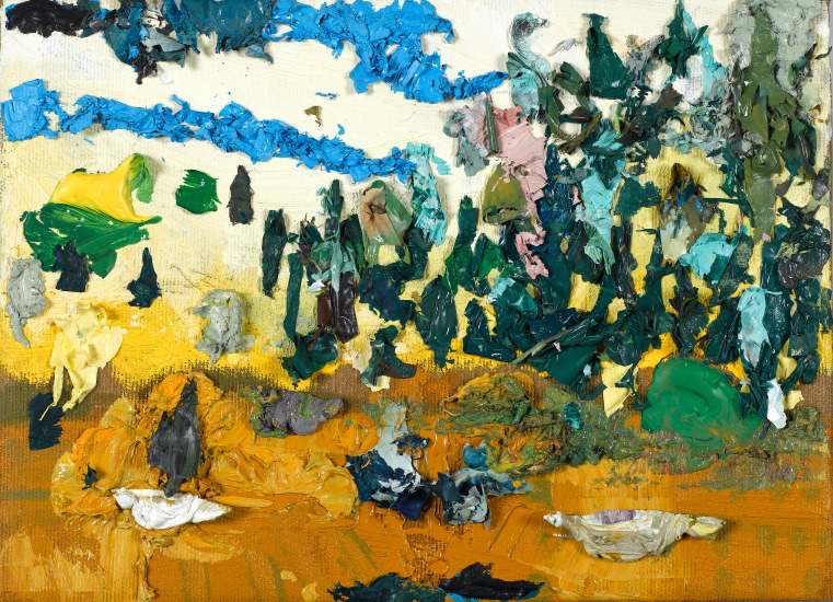 20 x 27 cm – Oil, acrylic, bits & pieces on canvas. Frame at back.