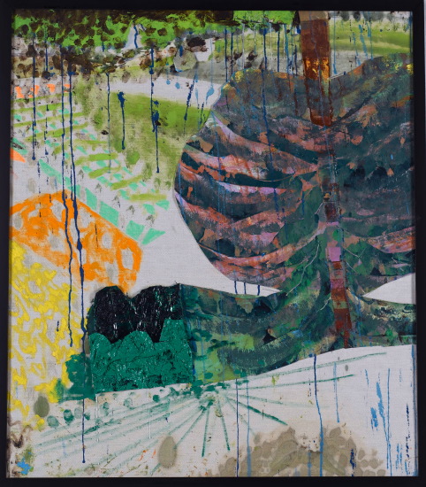 80 x 70 cm – Collage, oil and acrylic on canvas, backed on wood. Black wooden frame, 2,0 x 1,5 cm. Signed at the back "when stupidity becomes a visual dilemma."