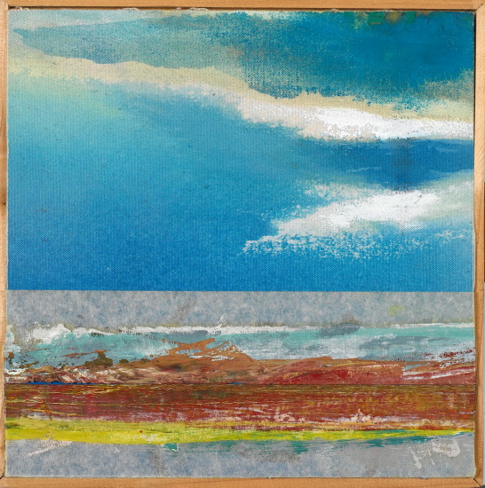 25 x 25 cm – Oil, acrylic and tape on canvas, backed on wood. Frame: natural pine.