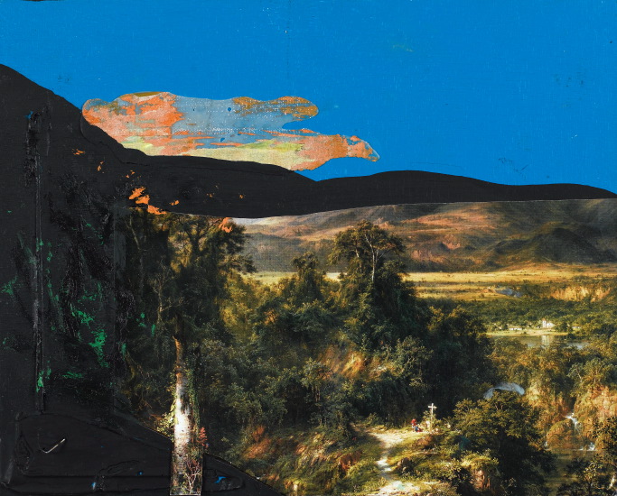 23 x 28,5 cm – Collage, oil and acrylic on wood. Black painted wooden frame at back.