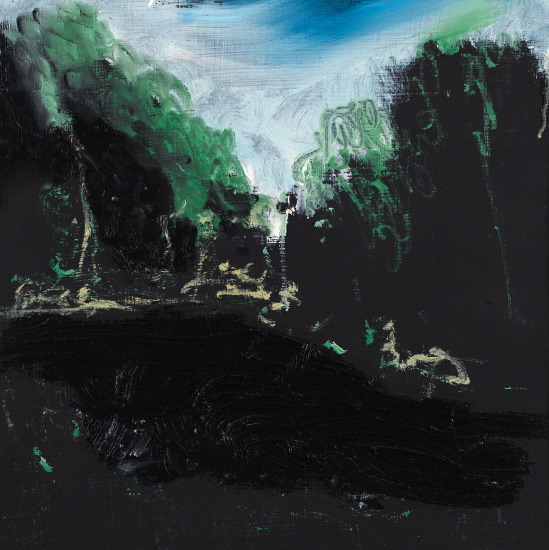 30 x 30 cm – Oil and acrylic on wood. Black painted wooden frame at back.