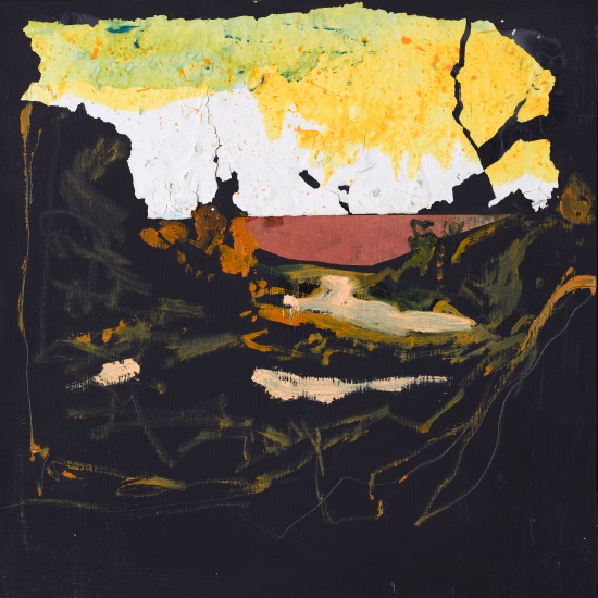 30 x 30 cm – Oil, acrylic and tape on wood. Black painted wooden frame at back.