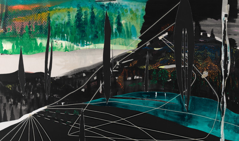 140 x 235 cm – Oil, acrylic, layers of canvas, narrow and broad tape on canvas.