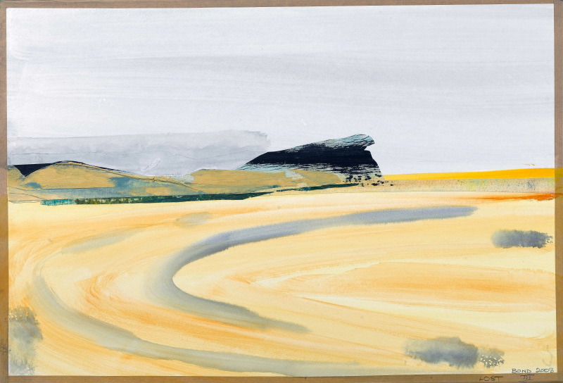 38 x 56 cm – Watercolor with oil and acrylic on tape on paper. Framed. Signed in front, at lower right.