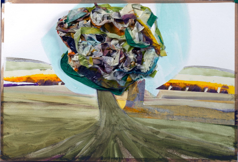 38 x 56 cm – Watercolor with oil and acrylic on tape on paper. Signed in front, at lower right.